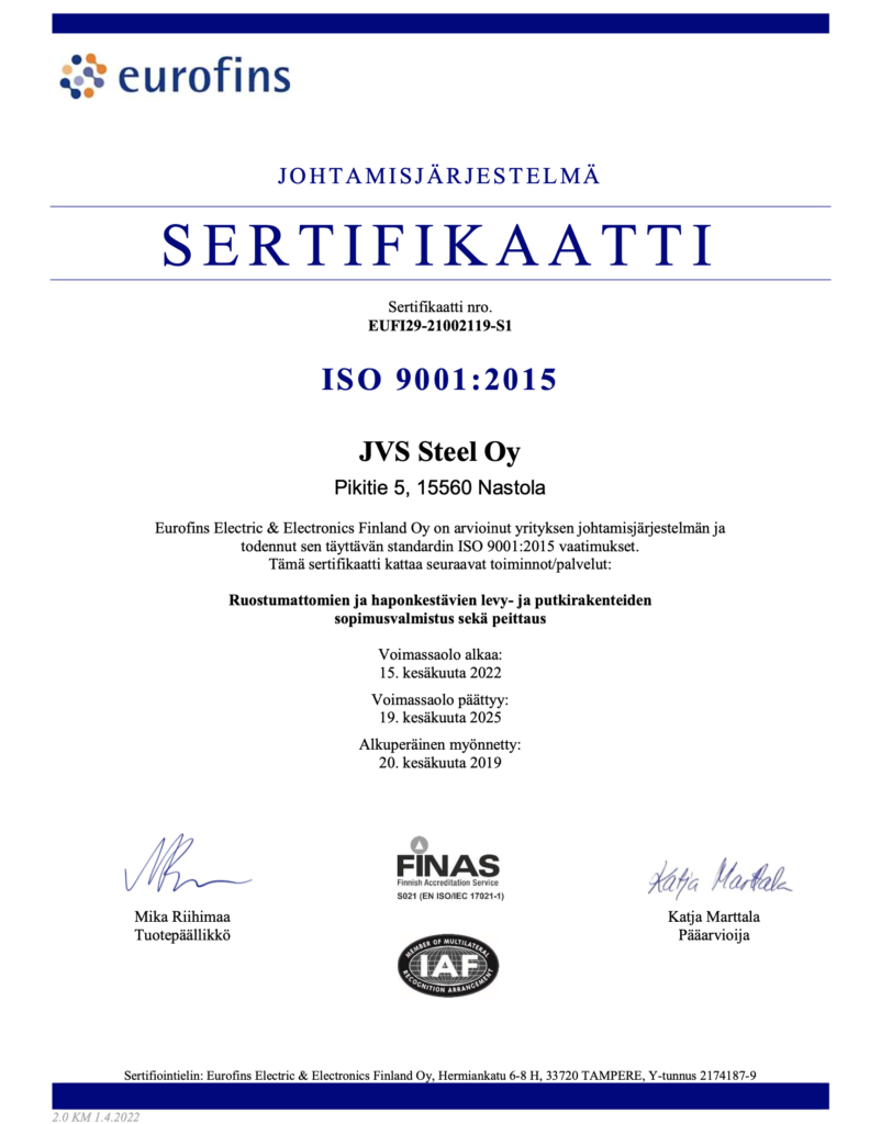 - Kotelorakenteiden tiiviys, ettei tule valumajälkiä.